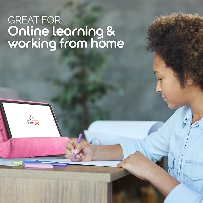 Flippy Tablet Pillow Stand - Cushion Tablet Stand & Holder, Bed Support for Lap and Desk, Compatible with Phone & Book Reading: Kindle, iPad Pro, iPhone & Samsung - in The Pink Baby