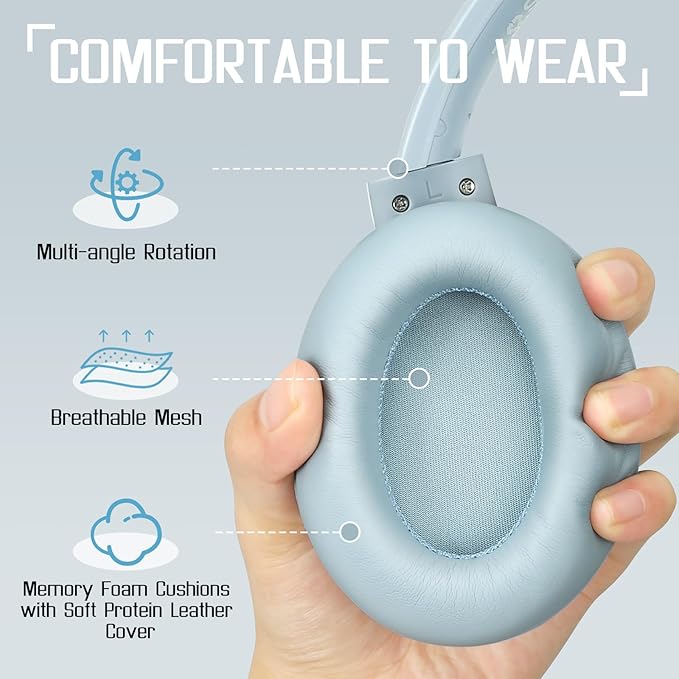 TUINYO Wireless Headphones - Noise Cancelling Over Ear Bluetooth Headphones with 60H Playtime, Deep Bass Hi-Fi Stereo Sound & Comfortable Earpads for Travel, Home and Office-Blue Gray…