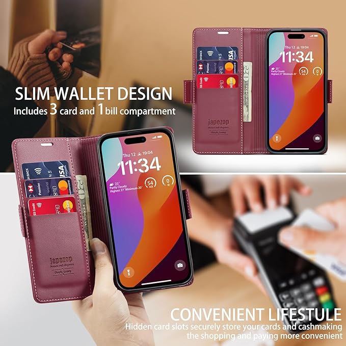 - 【Multi-Function】:IPhone 15 Plus 5G thin wallet case with 3 Card Slots & 1 Side Pocket, Perfect Combination of wallet and cell phone case.Allows you to easily access your cards or cash conveniently,minimizing the need to carry extrasSuitable for everyday life and business trip.Efficient magnetic lock will ensure your phone cover closed and protected when not in use.