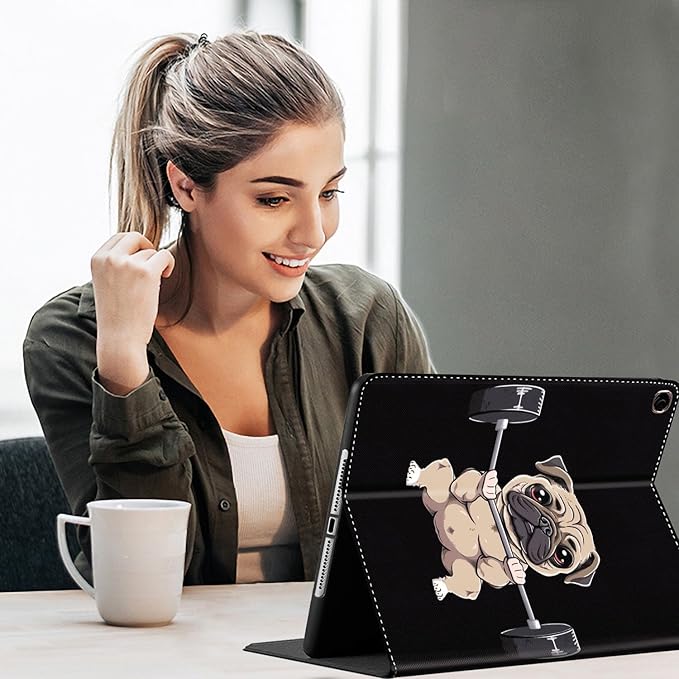 Case for Galaxy Tab A9 Plus , Auto Sleep/Wake Multi-Angle Viewing Slim Folio Stand Cover for Samsung Galaxy Tab A9+/A9 Plus 11 Inch 2023 (SM-X210/X216/X218), Pug Dog Weightlifting