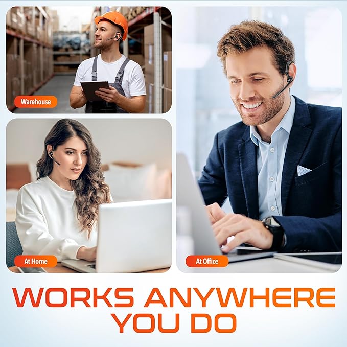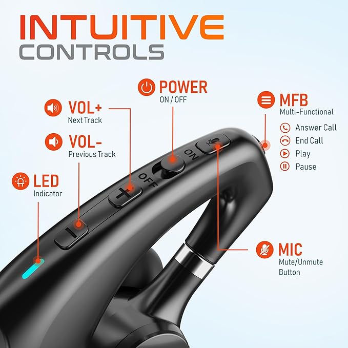 - Effortless Control and Versatile Charging Options: This bluetooth earpiece boasts intuitive controls, including volume adjustment, power toggling, mic muting, and a multi-functional button for seamless operation on Microsoft Teams and other platforms. Our wireless noise cancelling headset with mic offers two-way charging, which allows you to charge with the case or directly through a USB-C cable, catering to the dynamic needs of modern professionals.