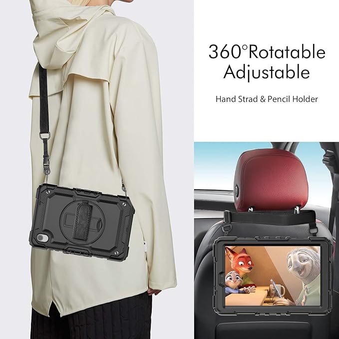 - Adjustable and removable shoulder strap provides you ultimate convenience for carrying around; You can even mount it to car headrest for back seat hand-free viewing, ideal for working, studying and travelling