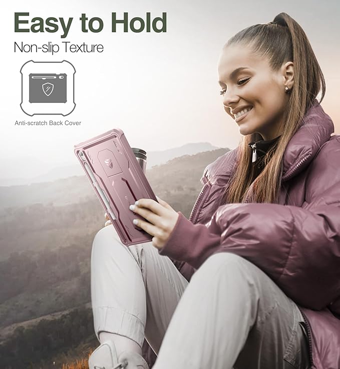 - 【Dual-layer Hybrid Military Grade Drop Protection】Constructed in two parts, a front protective piece with raised edges to keep your Galaxy Tab S10 Lite /S10FE/S9 FE screen up off surfaces and a back piece that's made of both shock-absorbing TPU and hard, drop-resistant Polycarbonate materials.