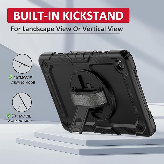 - Hand Strap & Shoulder Strap & Rotatable Kickstand: The adjustable hand strap helps you hold your tablet easily. And you could carry it convenience with shoulder strap. With rotating kickstand, you can get the watching angle or typing angle as you want