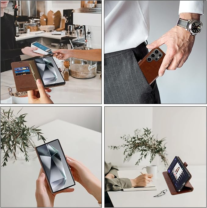 - Precise Craft and Perfect Design: Our handmade phone case is crafted with premium leather, covers 360°bezels protection of your samsung galaxy S24 Ultra 5G and includes raised sides to prevent screen scratches and any other daily wear. Ultra-strong magnetic closure provides security and peaceful mind.