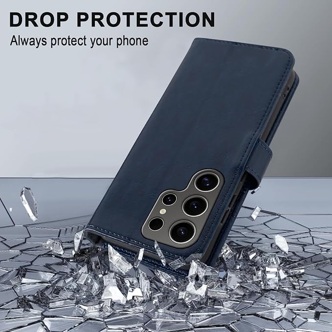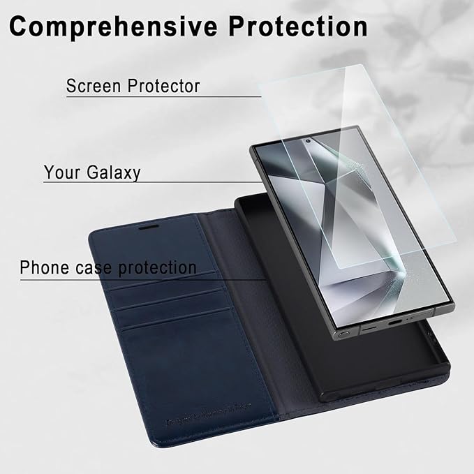 - Compatibility and Convenience Design: Compatible for samsung galaxy S24 Ultra 5G 6.8 inch, this flip folio leather wallet case with card slot holder and a cash pocket can store credit cards and up to 4 bills. Comes with glass screen protector and lens protector, all-round protection for your mobile phone. Internal RFID blocking interlayer material to keep your personal information safe.