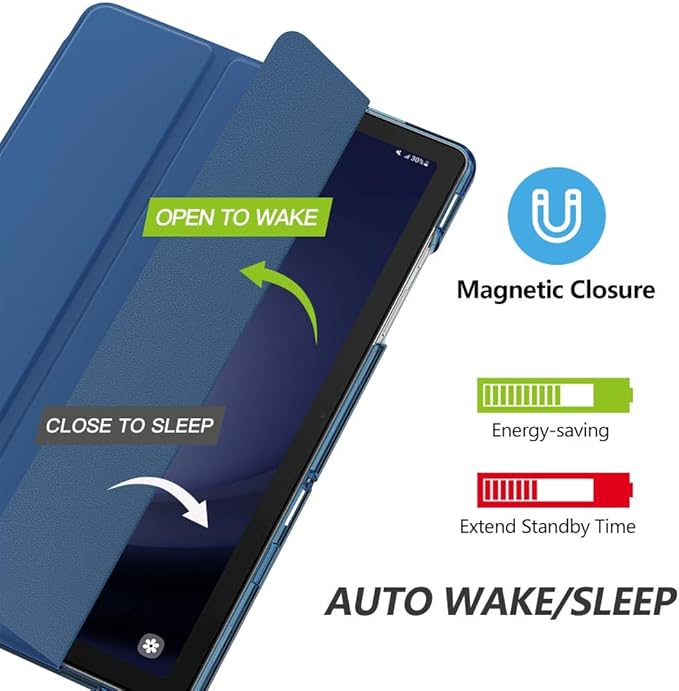 - Auto Wake/Sleep: Built-in magnetic strip, automatically wakes or puts your tablet to sleep when the lid is opened and closed. this Tab A9 Plus Case Protects and extends battery life