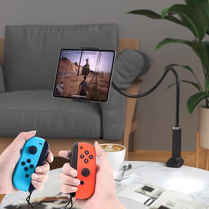 - Good for reading and viewing: Enjoy a great book or film with this tablet stand, completely free your hands, so you can lie comfortably on the bed or sofa. Note: Due to its flexible structure, there will be wobbling when typing on the tablet.