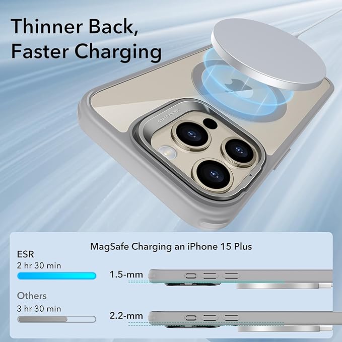 ESR for iPhone 15 Pro Max Case, Compatible with MagSafe, Military-Grade Protective Case, Built-in Stash Stand Phone Case, Scratch-Resistant Back Cover, Classic Series,Clear Grey