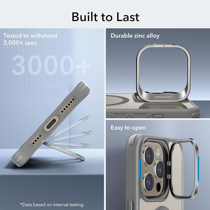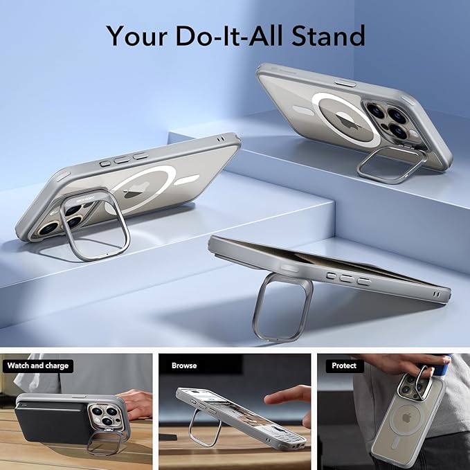 - Adjustable Stash Stand: positioned around camera frame to stay hidden when folded away while keeping MagSafe ring 100% unobstructed; enjoy a freely adjustable and stable view for watching shows whenever, wherever
