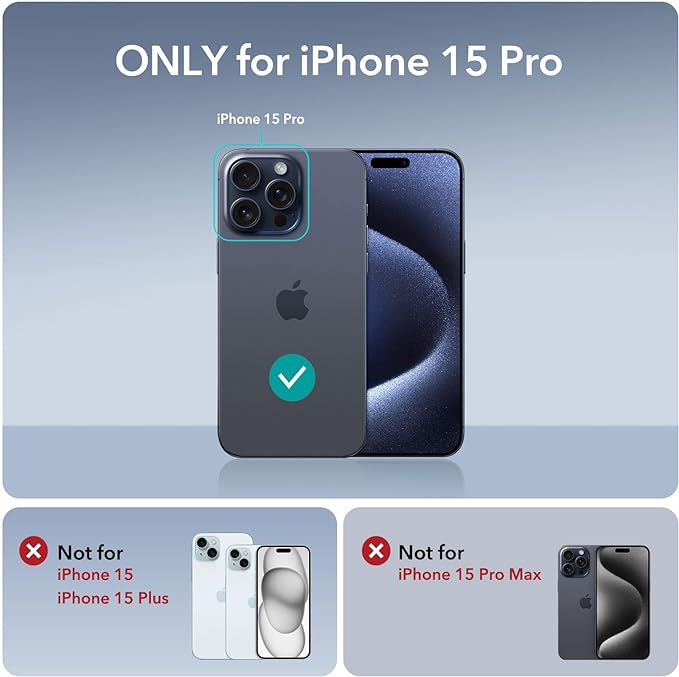 - Compatibility: only for iPhone 15 Pro; doesn't include camera lens protectors or built-in camera lens protector