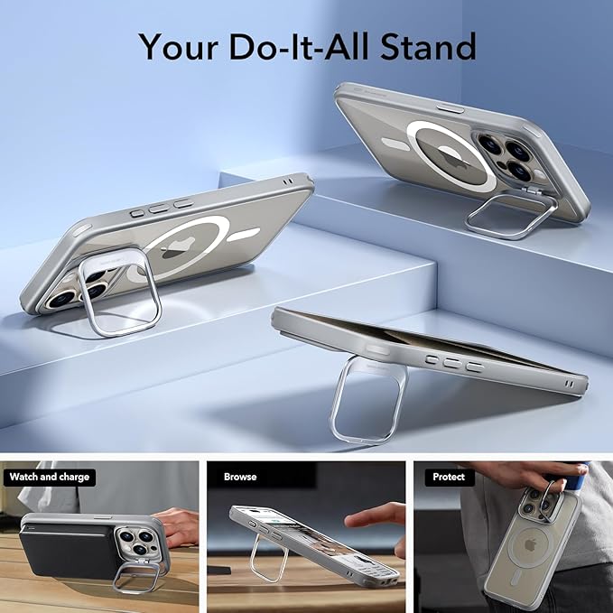 - Adjustable Stash Stand: positioned around camera frame to stay hidden when folded away while keeping MagSafe ring 100% unobstructed; enjoy a freely adjustable and stable view for watching shows whenever, wherever