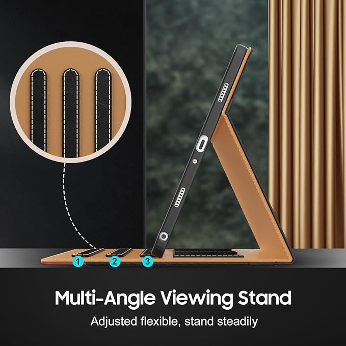 - Multiple Angles: 3 anti-slip strips keep case standing stably so you can type or watch easily. Adjust the viewing angle flexibly to meet your needs and free hands. Large pocket and two card slots are for bank cards, notes, cash,paper,documents etc