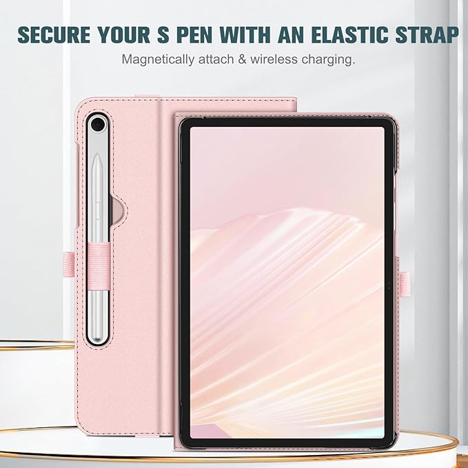 Fintie Case for Samsung Galaxy Tab S10 Lite/ S10 FE/ S9 FE 5G 10.9 Inch/Tab S9 11 Inch with S Pen Holder, Multi-Angle Viewing Protective Cover with Pocket, Auto Sleep/Wake, Rose Gold