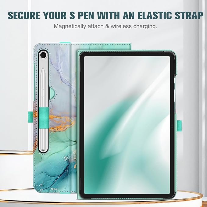 Fintie Case for Samsung Galaxy Tab S10 Lite/ S10 FE/ S9 FE 5G 10.9 Inch/Tab S9 11 Inch with S Pen Holder, Multi-Angle Viewing Protective Cover with Pocket, Auto Sleep/Wake, Emerald Marble