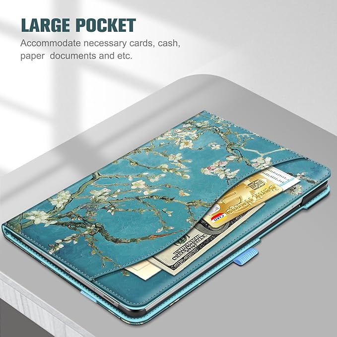 - Adjustable Angles: This case allows you to adjust the tablet to multiple angles securely. Document Card Pocket is designed for you to store your business cards, bank cards, notes or bills while on the go