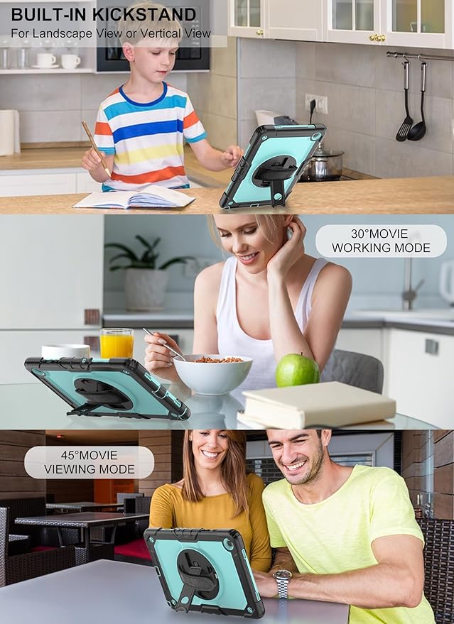 - 360° Rotatable Kickstand & Hand Strap: 360° rotating stand and hand strap can help you easily use the Tab A9 Plus for Samsung Galaxy. It feels comfortable and easy to use, flexible in vertical & horizontal any other angles ideal for watching video, reading or teaching, maximally free your hands. Adjustable hand strap suitable uses for all size of hands, adults, students, child