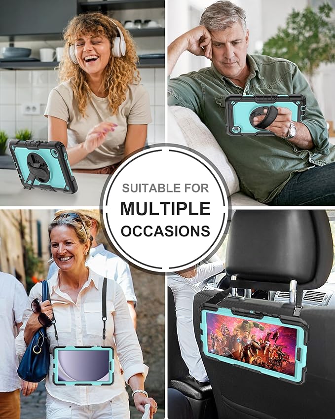 - Adjustable Shoulder Strap: The Heavy Duty Protective Cover for Samsung Galaxy Tab A9 8.7-inch Tablet comes with a adjustable detachable shoulder strap, so that you can carry your tablet on neck or shoulder like a bag, or sling it on car head rest. It's ideal for carrying on travel, at work, in school or outdoors