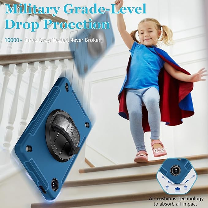 - MATERIAL COMPOSITION: This Case for galaxy tab A9 Plus has a built-in screen protector. The inner cover are Made from Hard PC and outer layer Fexible TPU. Our triple defense system has passed the Military Grade Drop Test [MIL-STD 810G-516.6] and can withstand shocks and drops from up to 15 feet, 10,000 times. These shock-absorbent layers incorporate Air Cushion Technology to effectively protect your iPad Air 11 2024 from accidental drops, bumps, and scratches