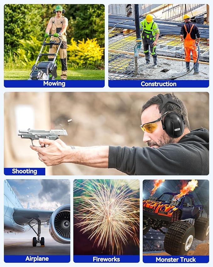 - 【Double-Certified Safety】: Breathe easy with ANSI S3.19-1974 & CE EN 352-1 certified hearing armor. Our ear defenders are meticulously designed to provide optimal safety. They excel at reducing noise and maximizing hearing protection for gun range, yard work tools, loud machinery, and DIYers who need real protection from deafening environments.