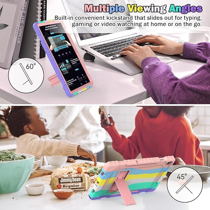 - 【Functional Kickstand】 - Cover built with convenient kickstand that slides out for typing, gaming or video watching at home or on the go. Built from durable plastic material exterior - Snug fit, hybrid shockproof and protection.