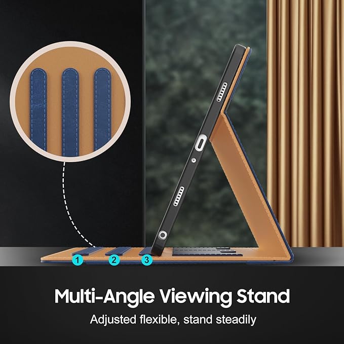 - Multiple Angles: 3 anti-slip strips keep case standing stably so you can type or watch easily. Adjust the viewing angle flexibly to meet your needs and free hands. Large pocket and two card slots are for bank cards, notes, cash,paper,documents etc