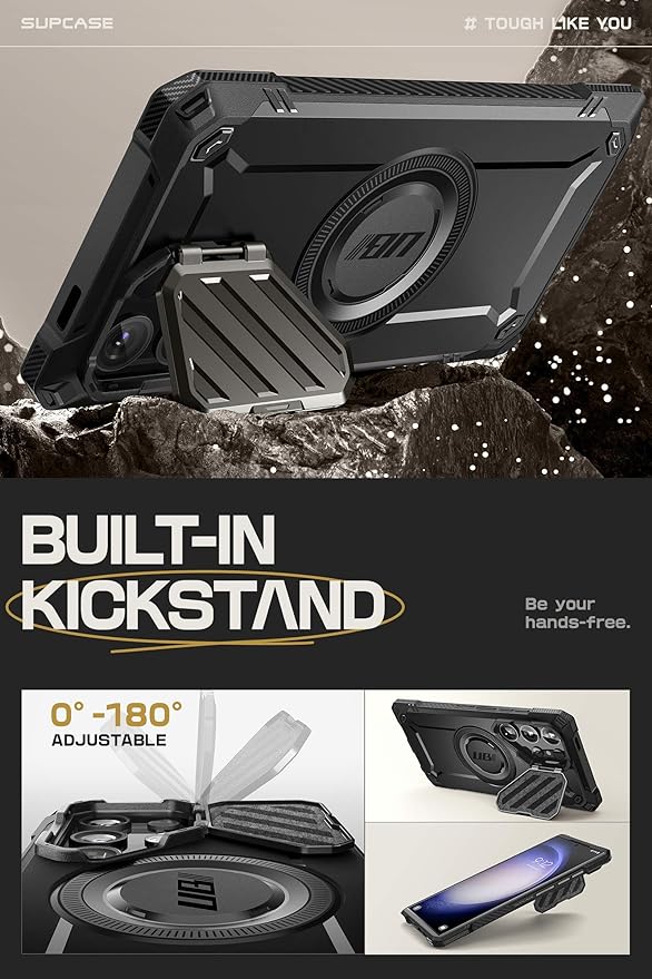 SUPCASE for Samsung Galaxy S24 Ultra Case with Stand [Built-in Camera Cover Kickstand] [S Pen Friendly] [Compatible with MagSafe] Heavy Duty Rugged Magnetic Phone Case for Galaxy S24 Ultra, Black