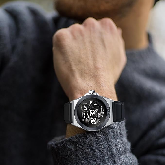 - 【1.32'' HD Screen & Stainless Steel Case】1.32'' full-color full-touch tempered glass with 360x360 HD round screen and STAINLESS STEEL CASE. Gives you a brilliant wearing feeling. And more watch faces for you to choose from the App: DaFit. Also supports customizing the watch face from any photos such as your friends, family, pets, etc. to match your mood, style, or favorite activity - for a face that's as unique as your own