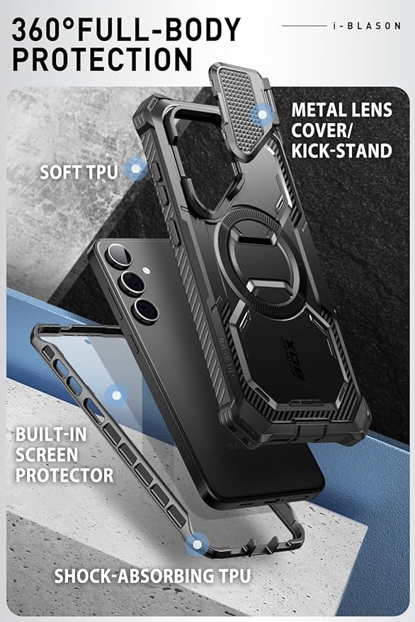 i-Blason for Samsung Galaxy S24 Case with Camera Cover Stand, [Compatible with MagSafe] [Built-in Screen Protector], Anti-Fall Magnetic Phone Case for Samsung Galaxy S24 6.2", Black