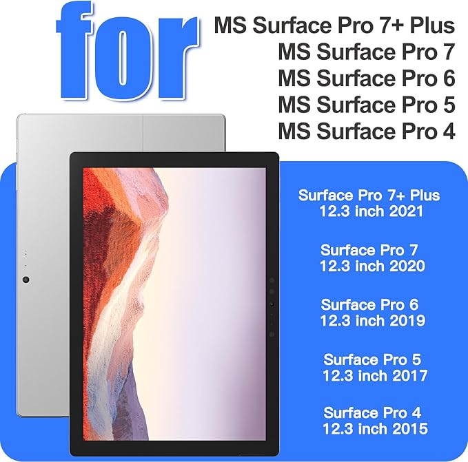 - Compatibility: The Shockproof Case design for 12.3 inch Microsoft Surface Pro 7+ Plus 2021, Surface Pro 7 2019, Surface Pro 6 2018, Surface Pro 5 2017, Surface Pro 4 2015 with Pencil Holder for Pen securely Storing. NOTICE: Not Compatible with Type Cover Keyboard and S Pen is NOT included