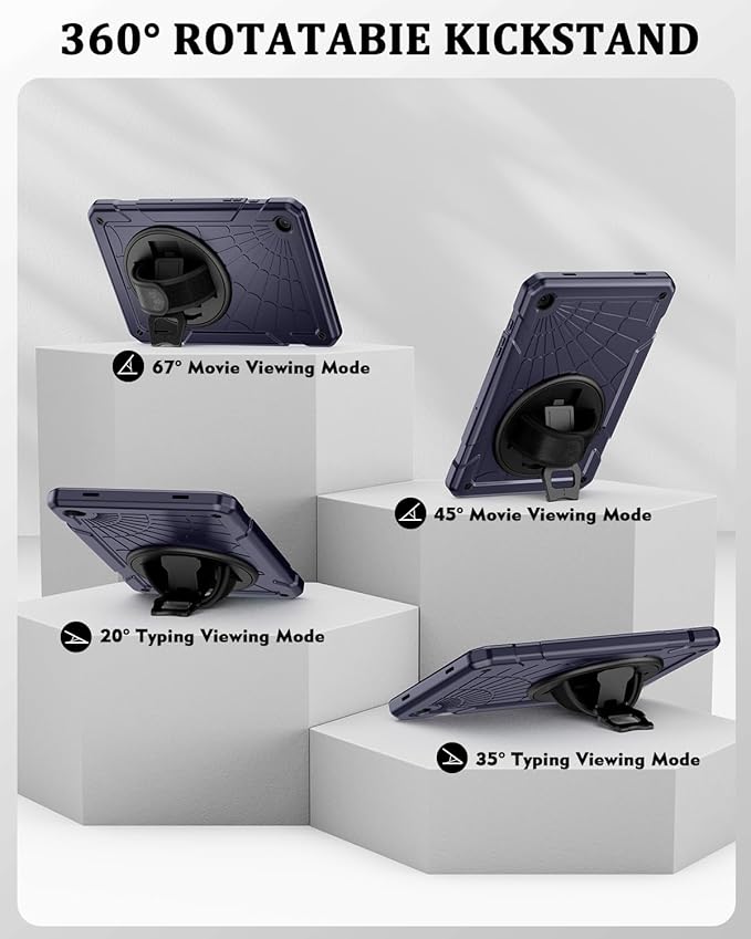 - 360-DEGREE ROTATING STAND: A 360-degree rotating sturdy kickstand can support your Samsung Galaxy Tab A9 while watching a movie, playing games, or typing, leaving your hands free—a very user-friendly design.
