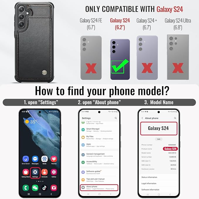 - for Samsung Galaxy S24 Case Wallet: Made of high quality durable PU leather and soft TPU inner shell, the craftsmanship phone wallet case is compatible with Galaxy S24; The case for Samsung S24 will make your work and life more convenient while protecting your phone