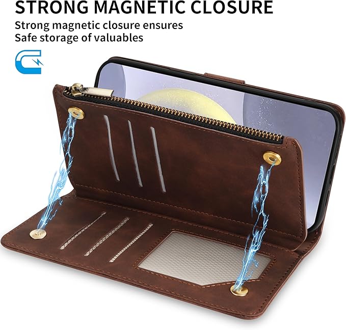 ZZXX for Samsung Galaxy S24 Plus Wallet Case with RFID Blocking Card Slot PU Leather Zipper Flip Folio with Strap Kickstand Protective Cover for Samsung Galaxy S24+ Case Wallet(Coffee-6.7 inch)
