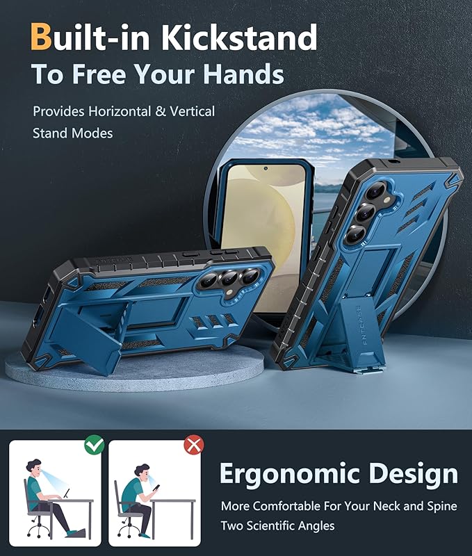 - Built-in Foldable Kickstand: The rugged Samsung Galaxy S24 Case with built in foldable stand forms a stable triangular structure with the cell phone cover when opened, vertical and horizontal viewing angles freeing your hands to do whatever you want.