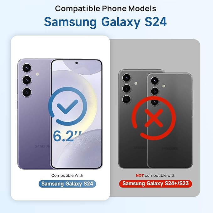 - Compact and Lightweight : TPU material with hard plastic frame, makes your phone lightweight and tough; Slim body (15.69 *8.04 *1.3 cm) doesn't add much to the size of your S24; With a phone strap for convenient carrying.