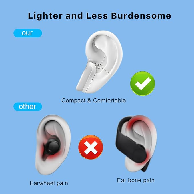 - 【Comfortable Fit】Ergonomically designed, with 45-degree sound outlet that conforms to the contours of your ears not easy to fall, the wireless ear buds are comfortable to wear for long periods of time without feeling uncomfortable.