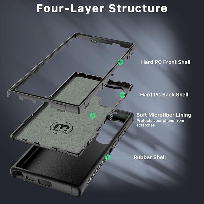 - MILITARY GRADE PROTECTION - Protect your device and feel secure with this rugged case from MyBat Pro! The Maverick Series Samsung Galaxy S24 Ultra case military offers shock absorbing corner protection and multi-layered defense from accidental damage. A raised bezel lip adds an additional layer of protection for the screen. Totally a heavy duty Samsung Galaxy S24 Ultra case. (Warm note: Without Built-in Front Screen Protector.)