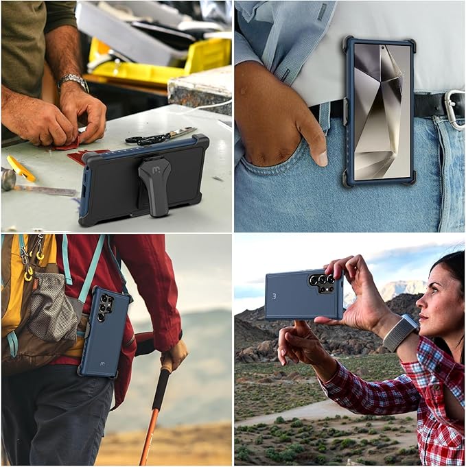 - 360° ROTATING HOLSTER CLIP FOR OUTDOOR & INDOOR - Detachable rotating holster conveniently attaches to your belt or bag, allowing you to keep your device accessible and secure, this Samsung Galaxy S24 Ultra case with belt clip is wonderful for outdoor activities and men. The Holster Clip can also be converted into a kickstand for a hands-free way to watch videos with ease.