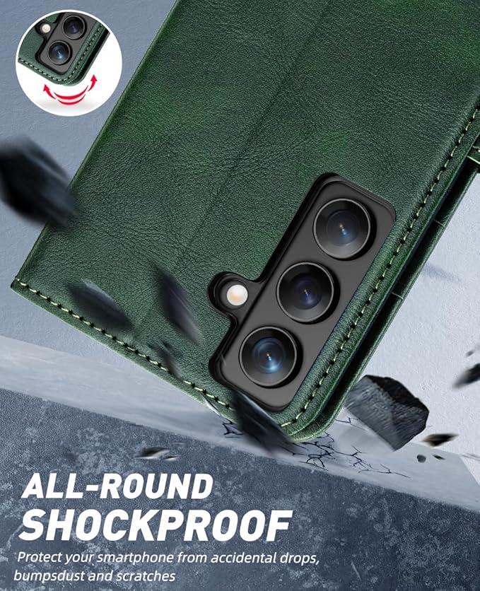 OCASE Compatible with Galaxy S24 5G Wallet Case, PU Leather Flip Folio Case with Card Holders RFID Blocking Kickstand [Shockproof TPU Inner Shell] Phone Cover (2024), Blackish Green