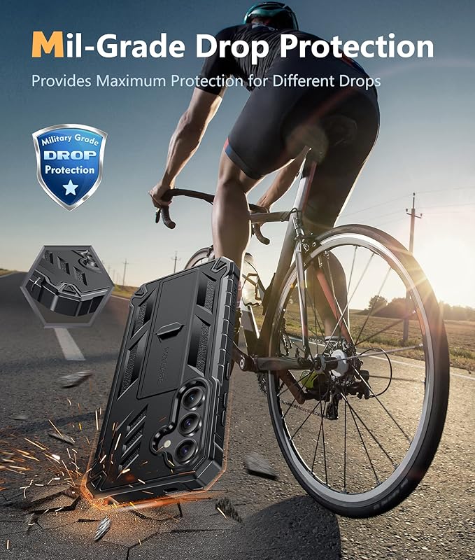 - Military Grade Drop Protection: This heavy duty Galaxy S24 Case is made of PC and TPU materials hybrid which absorbs the energy brought by the collision and shock. The matte texture of the case and the non-slip texture of the tires on both sides provide a good and comfortable grip