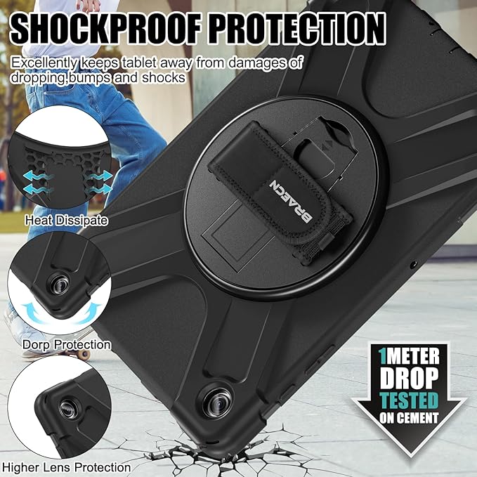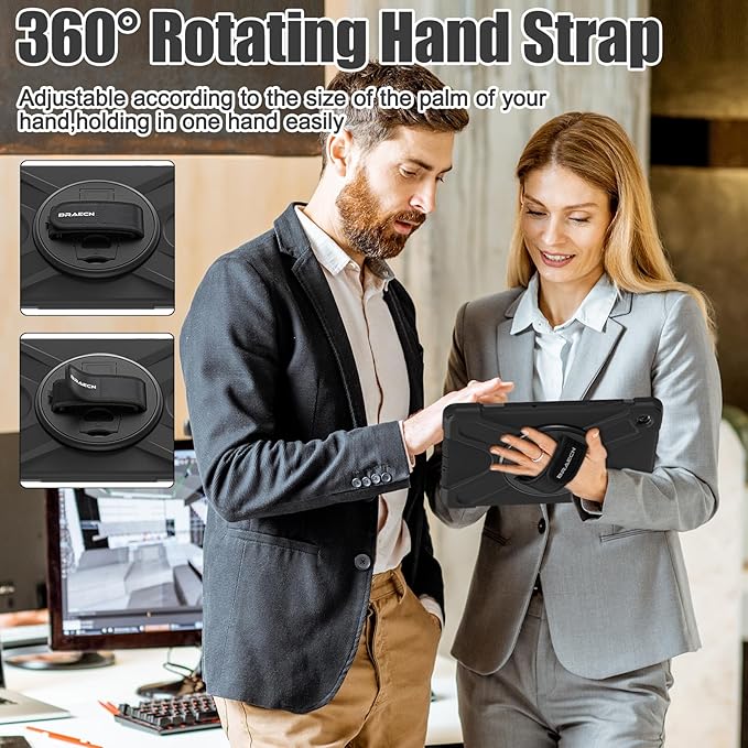 - 360° Rotating Hand Strap & Stand: The Protective Samsung Galaxy Tab A9+ Plus Case built-in 360° Rotatable Hand Strap & Kickstand on the back, flexible in Vertical & Horizontal any other angles ideal for watching video, reading or teaching, maximinzely free your hand. Adjustable Hand Strap perfectly suitable uses for all size of hands, adults, students, child