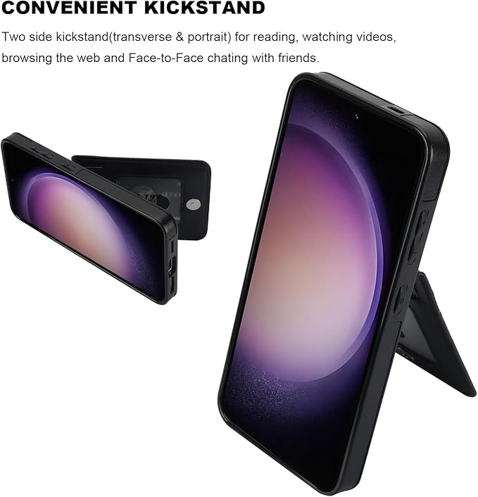 - [FUNCTIONAL WALLET]: 4 Card Slots Securely Hold more than 3 cards and Some Cash(IDs, Debit Cards, Credit Cards, Drivers License, etc.) without taking your wallet outside. Magnetic Buttons can keep your case slim and stylish and keep your cash and cards secure.