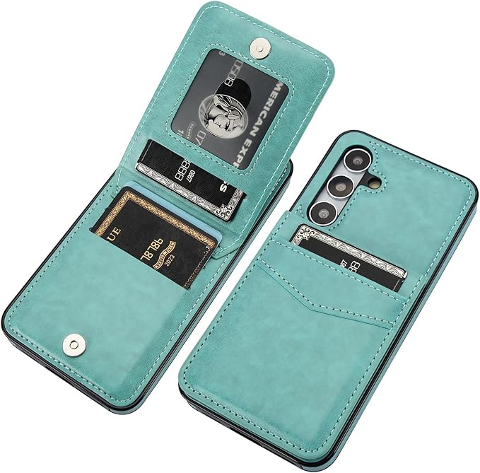 KIHUWEY for Samsung Galaxy S24 Case Wallet with Credit Card Holder, Flip Premium Leather Magnetic Clasp Kickstand Heavy Duty Protective Cover for Samsung Galaxy S24 6.2" (Mint Green)