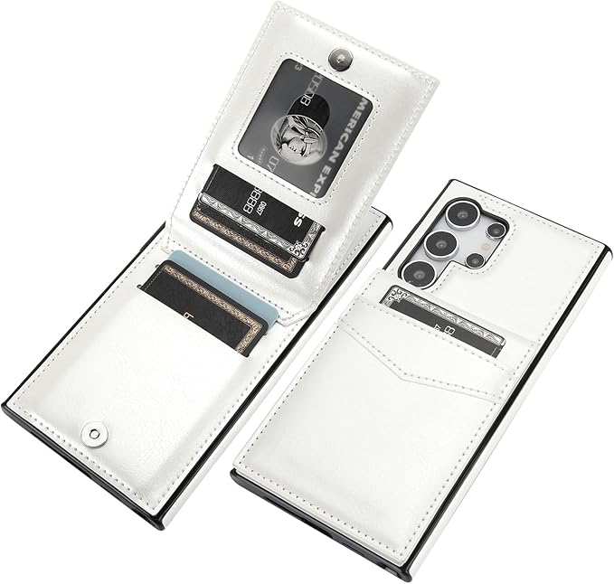 KIHUWEY Samsung Galaxy S24 Ultra 6.8'' Cellular Phone Case, Flip Leather Wallet with Card Holder, Magnetic Clasp, Kickstand, Heavy Duty Protective Cover (White)