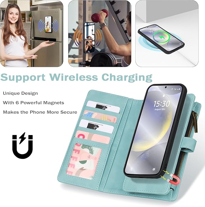 - [Full Protection & Detachable] - This magnetic galaxy s24 case can be easily taken out for use alone, or connected by powerfully magnetism to wallet ,soft leather 360° full coverage,which protects your phone from drop damage and daily scratch. The wrist strap of the wallet case is removable too.