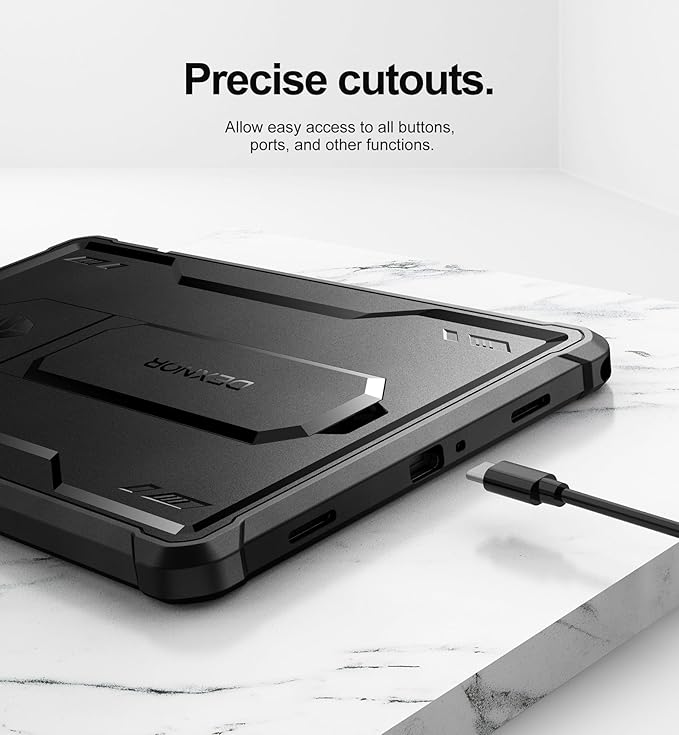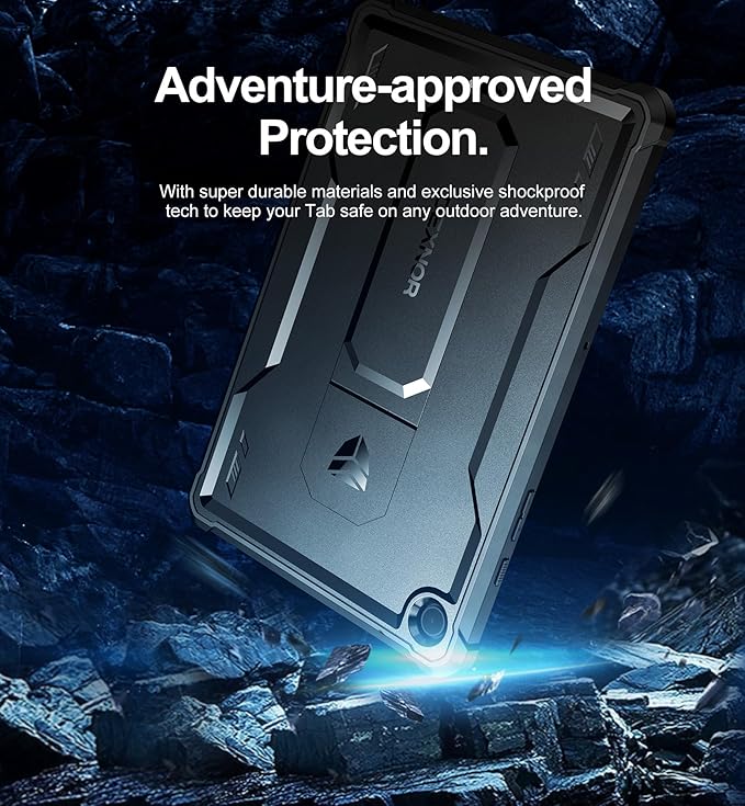 - 【Dual-layer Hybrid Military Grade Drop Protection】Constructed in two parts, a front protective piece with raised edges to keep your Galaxy Tab A9 Plus screen up off surfaces and a back piece that's made of both shock-absorbing TPU and hard, drop-resistant Polycarbonate materials.