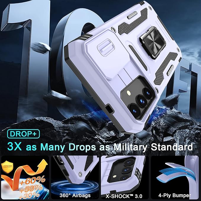 DEERLAMN Case for Samsung Galaxy S24+ Plus with Slide Camera Cover+Screen Protector (1 Pack), Rotated Ring Kickstand Military Grade Shockproof Protective Cover-Light Purple