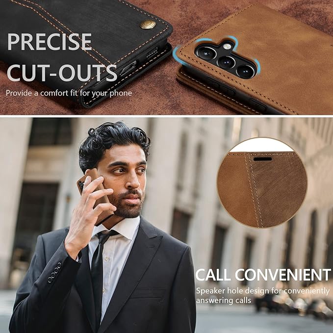 QLTYPRI Wallet Case for Samsung Galaxy S24, Vintage Folio PU Leather Purse Case with Card Slots Magnetic Closure Kickstand Flip Crashproof Phone Cover for Samsumg Galaxy S24 - Brown