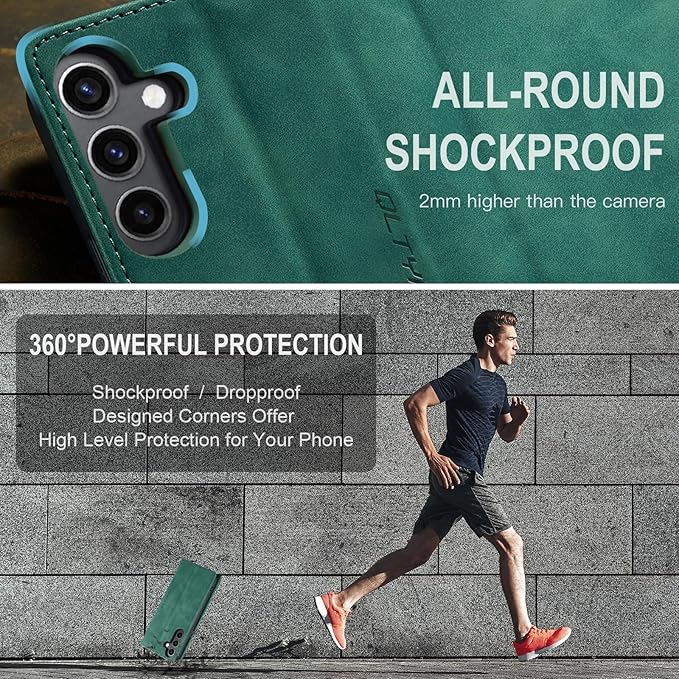 QLTYPRI Case for Samsung Galaxy S24, Vintage PU Leather Wallet Case Card Slot Kickstand Magnetic Closure Shockproof Flip Folio Case Cover for Samsung Galaxy S24 - Dark Green