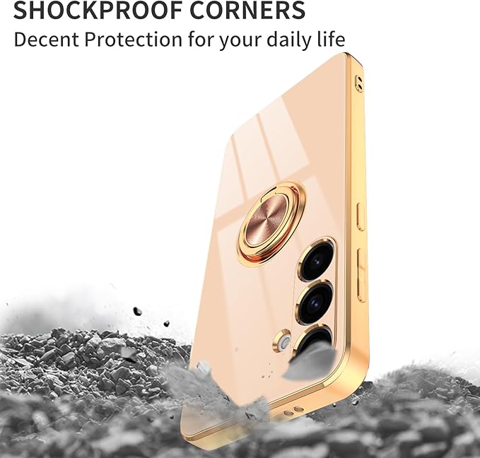 Dinick Pink for Samsung Galaxy S24+ Case with Ring Holder Kickstand [with Magnetic] Soft TPU Bumper, Glitter Gold Electroplated Cover Slim Thin Protective Phone Case for Galaxy S24 Plus